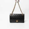 Die Chanel Double Flap Tasche Medium in klassischem Schwarz zeigt die ikonische Rautensteppung und eine elegante, zeitlose Silhouette, die den Stil des Hauses Chanel perfekt verkörpert.