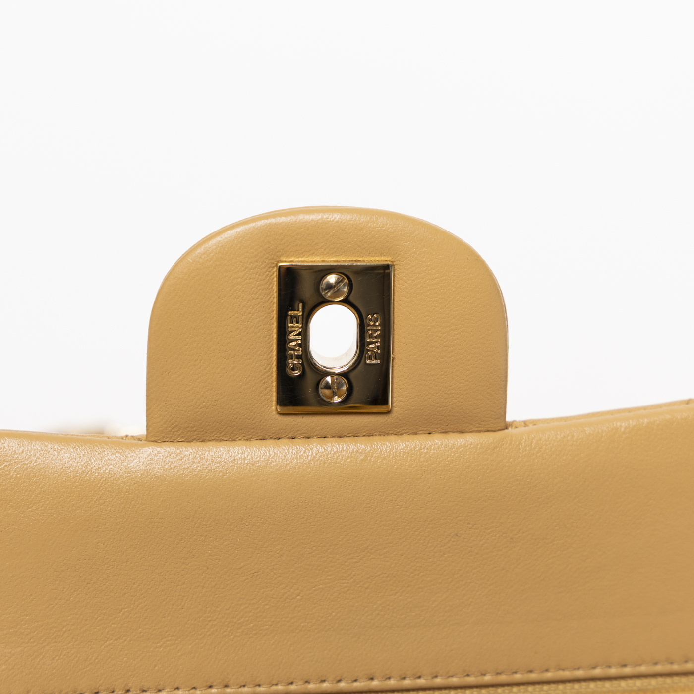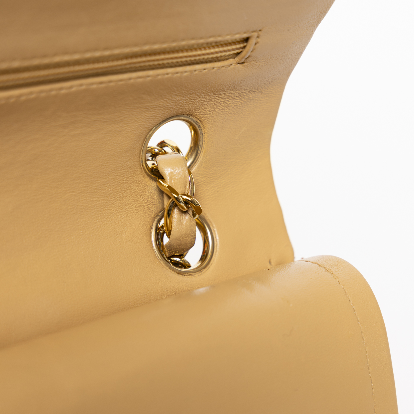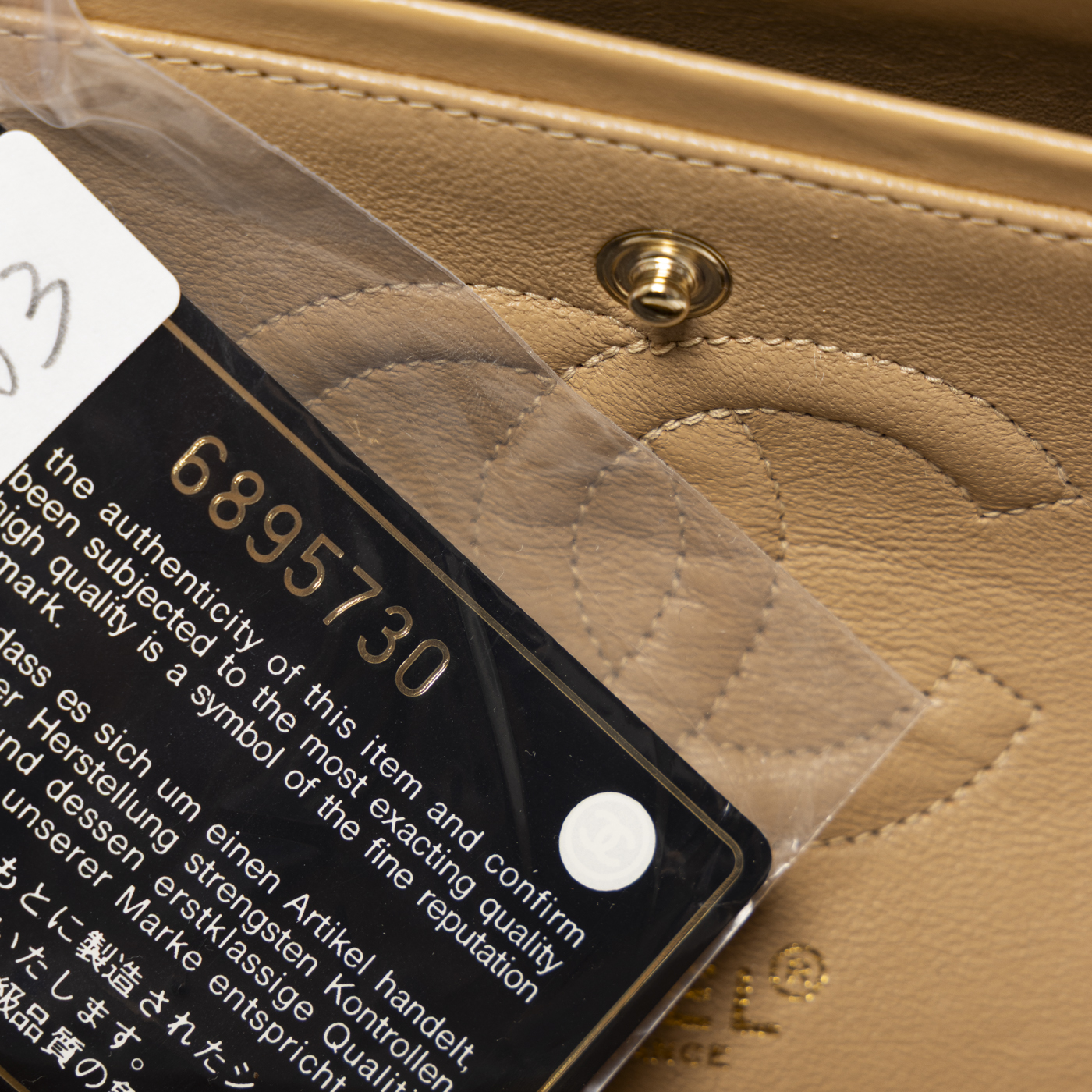 Chanel Timeless Double Flap Small Tasche Lammleder Beige Mit Goldener Hardware