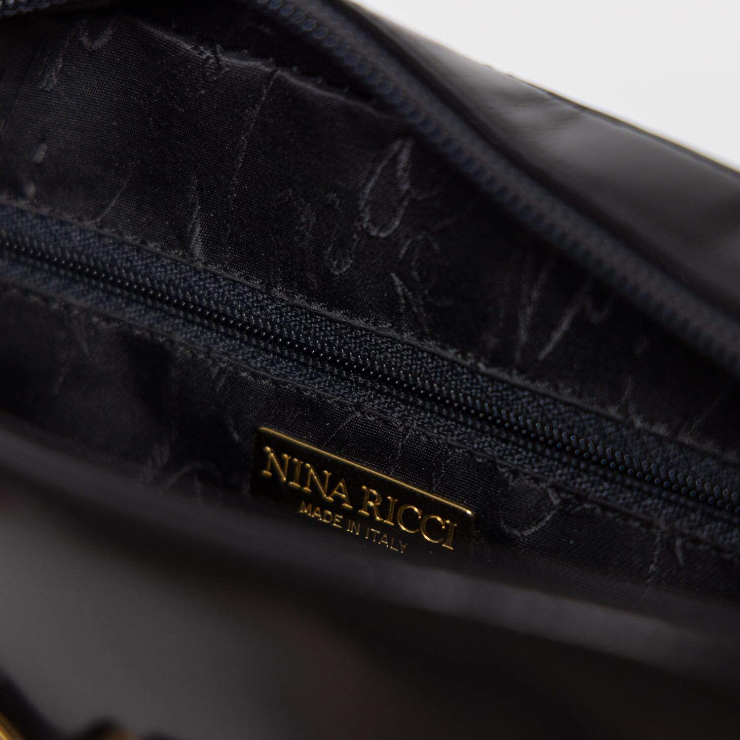 Diese Nina Ricci Kamera Tasche stammt aus den 90ern und ist das kleine Schwarze in Taschenform, welches sich Tag und Nacht mühelos zu eleganter wie lässiger Garderobe kombinieren lässt und stets simple Eleganz verkörpert. Die kompakte Tasche ist aus schwarzem beschichtetem Rindsleder gefertigt und mit subtiler goldener Hardware versehen, die Vorderseite wird von den NR Initialen in Gold geziert. Der Innenraum verfügt neben dem Hauptfach über ein flaches Reißverschlussfach.