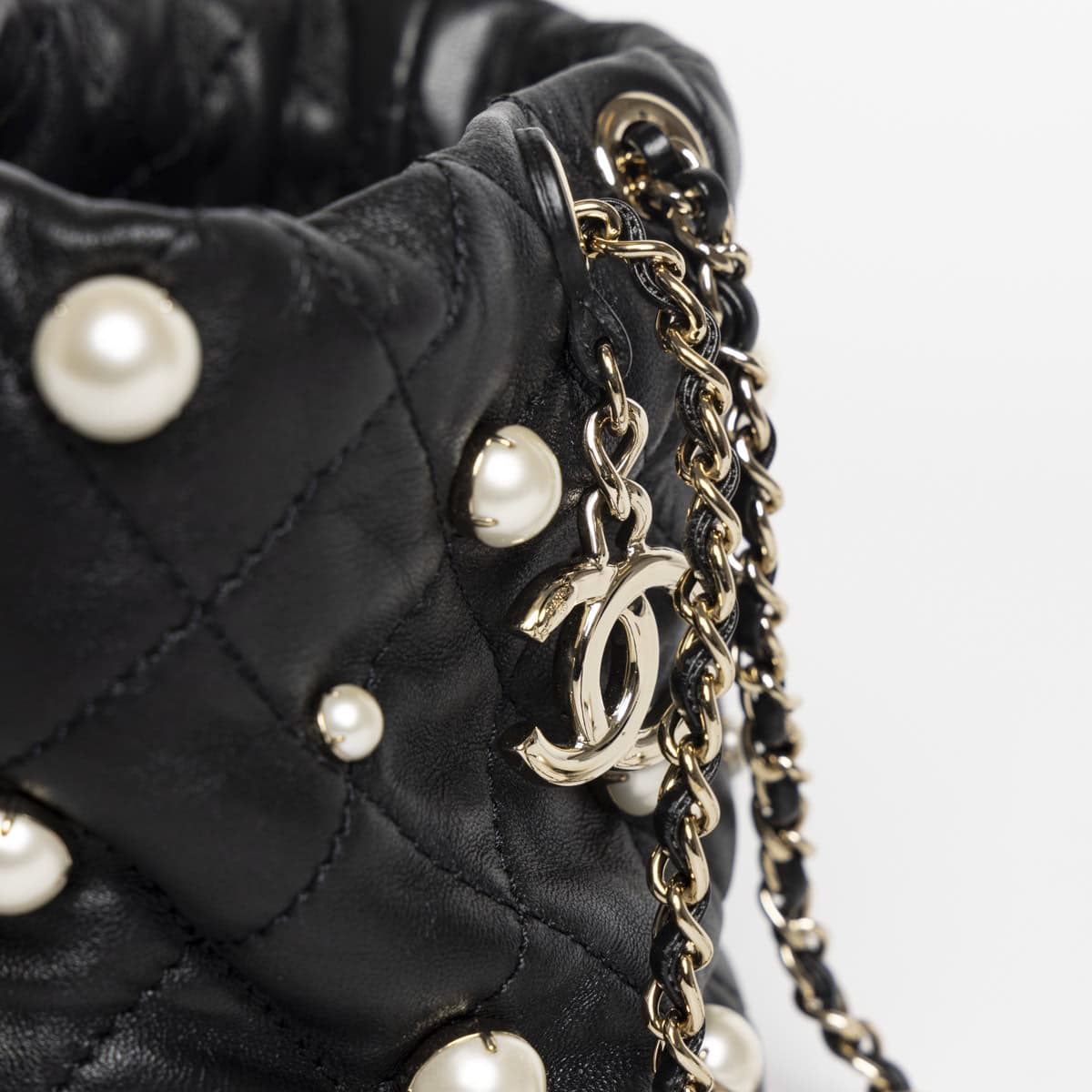 Chanel Mini Pearl Bucket Bag Lambskin Black with Pearls
