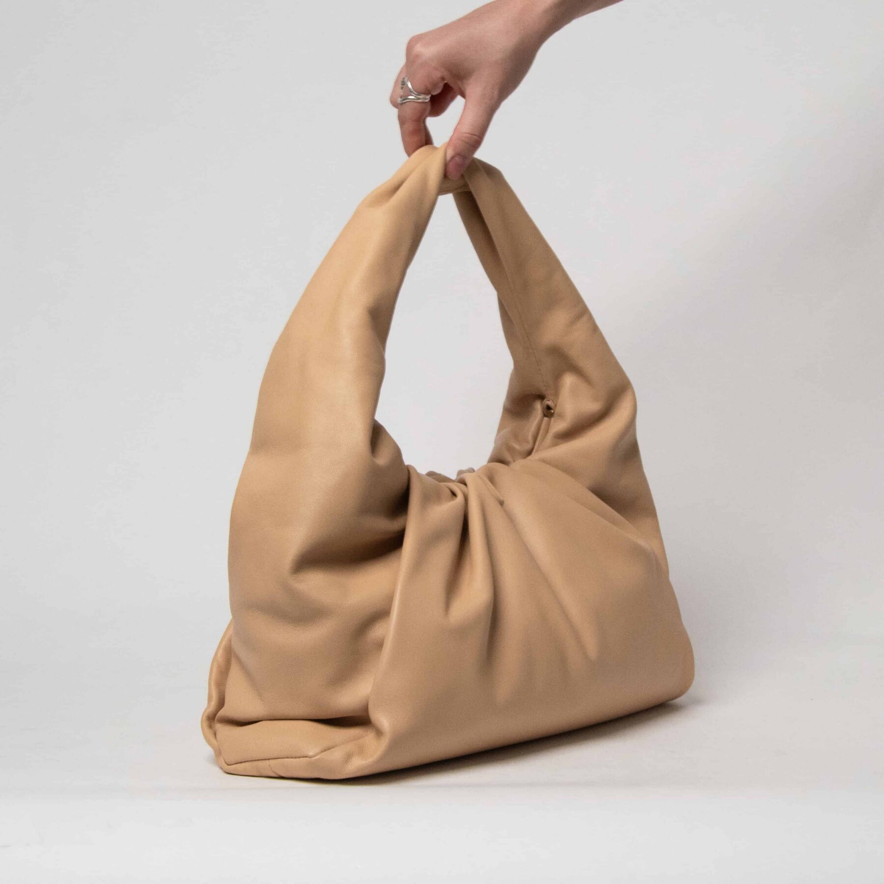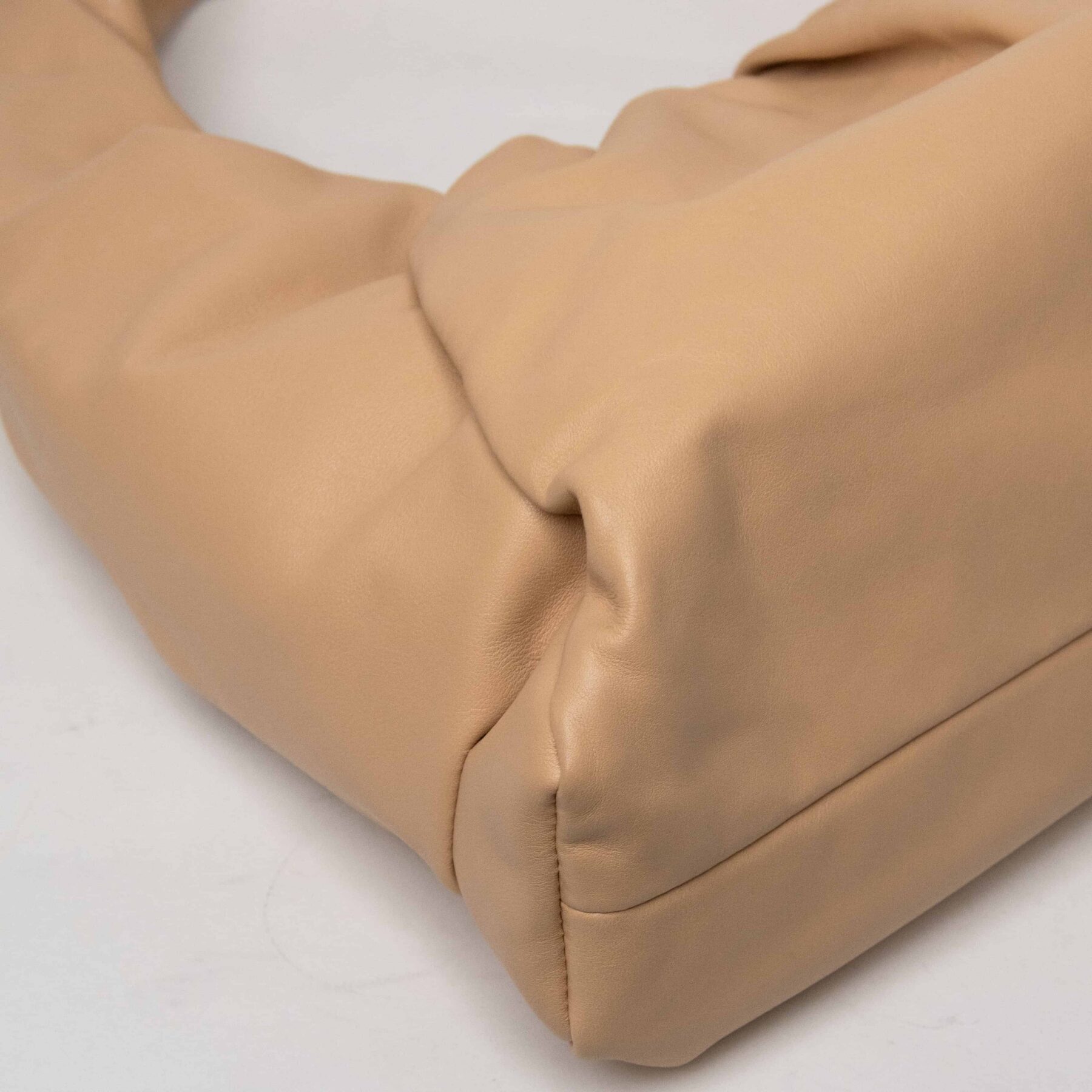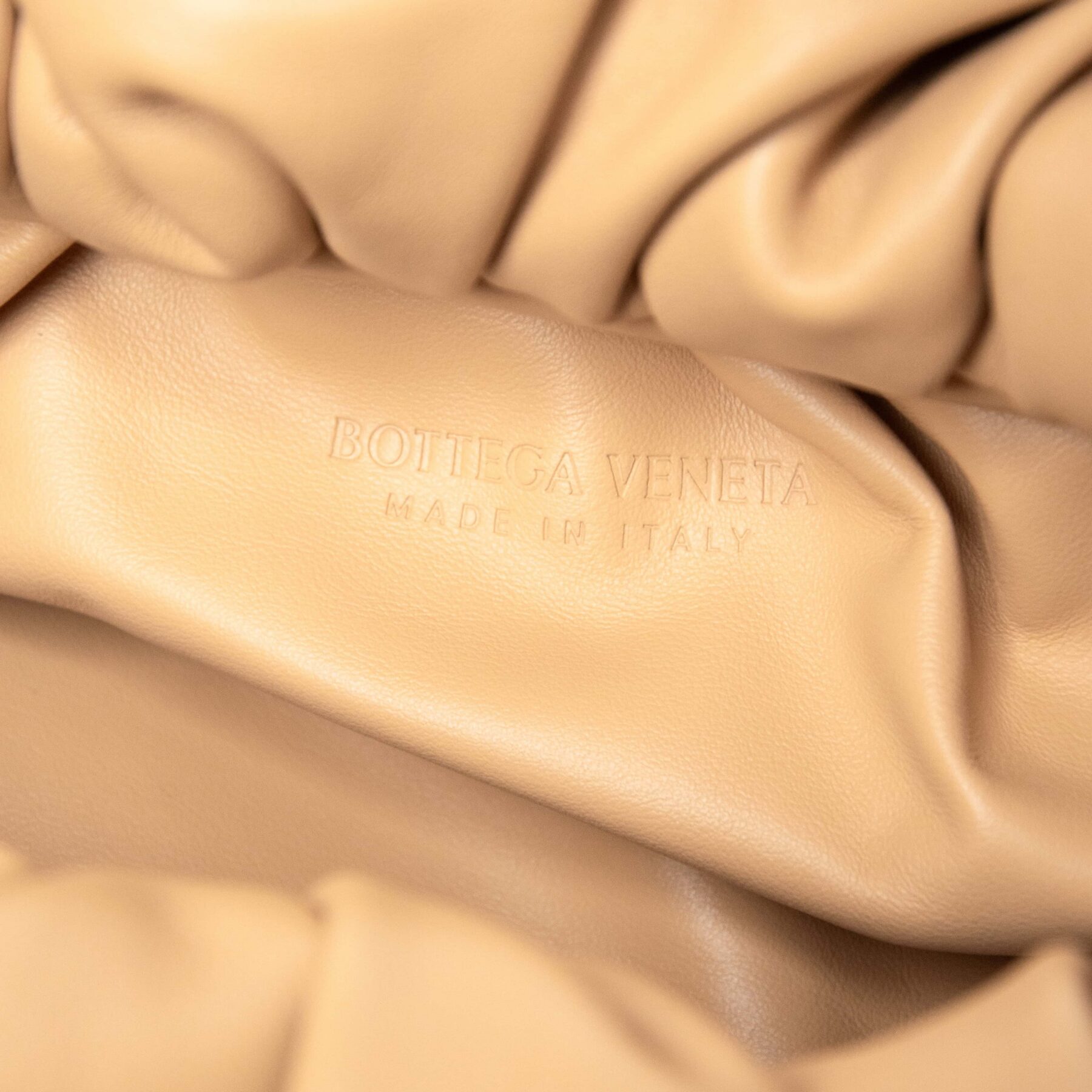 Die Bottega Veneta Shoulder Pouch aus feinstem Kalbsleder subtilem beige vereint minimalistische Eleganz mit Lässigkeit und Praktikabilität, was sie zu einem besonders versatilen Accessoire macht. Der Innenraum bietet genügend Platz für alle Essentials wie Handy, Geldbeutel und Kosmetikartikel und macht die Tasche somit zum perfekten Begleiter für Tag und Nacht.