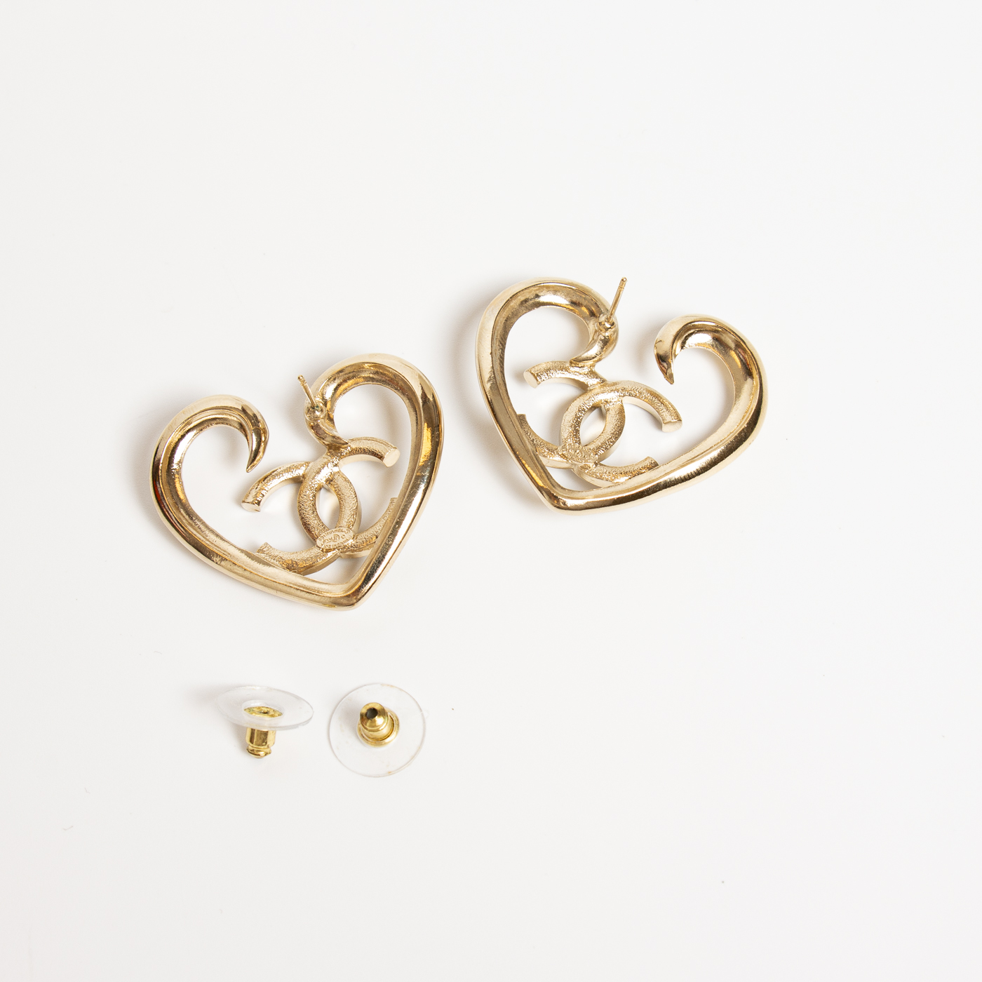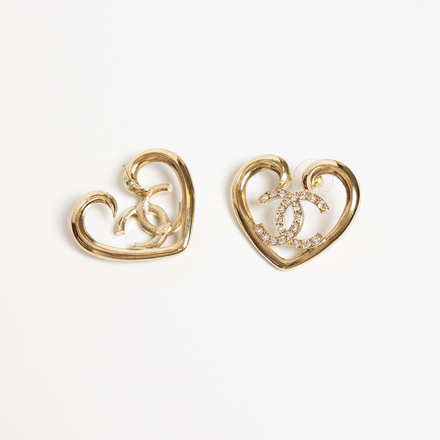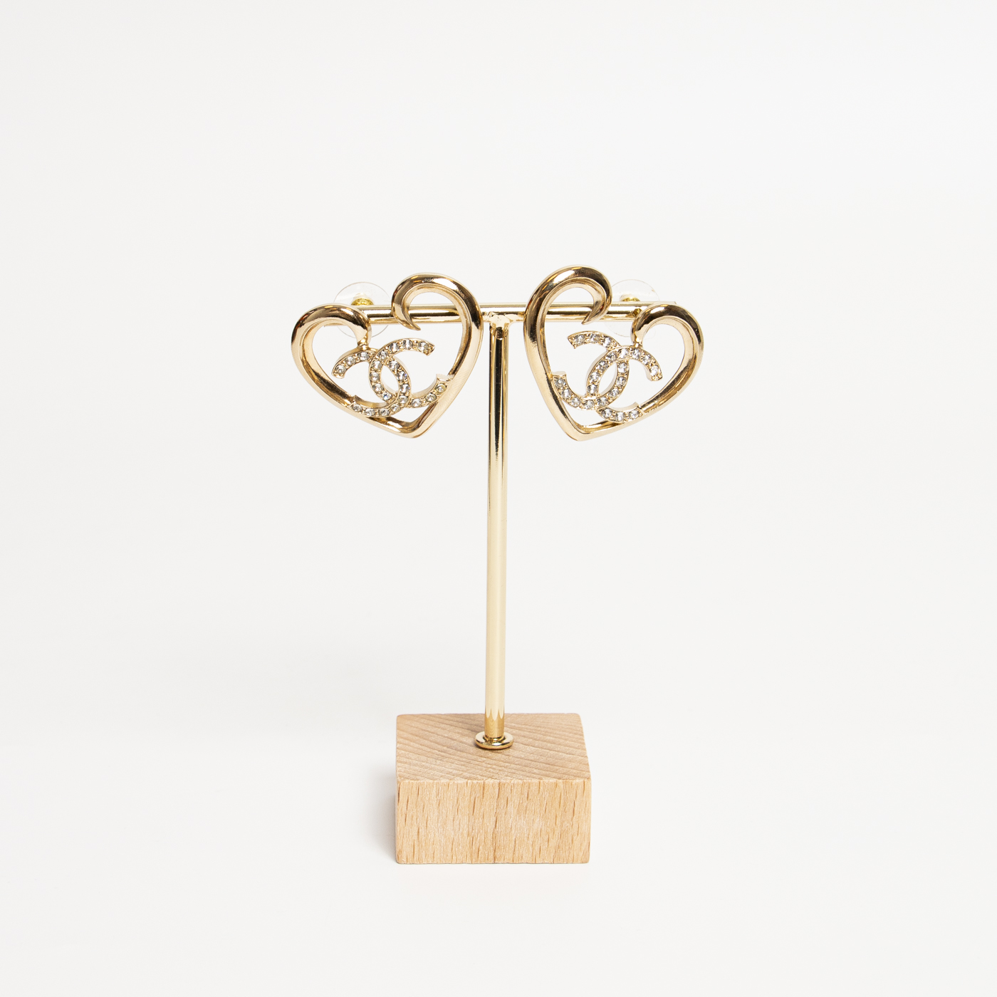 Chanel Herz Ohrringe mit CC Kristall Ohrstecker Silber