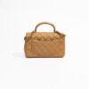 Diese begehrte Chanel Mini Rectangular Top Handle zeigt sich in weichem, luxuriösem Lammleder in einem warmen Braunton und verbindet feminine Eleganz mit moderner Verspieltheit.