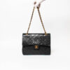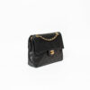 Die Chanel Single Flap Tasche präsentiert sich in klassischem Schwarz mit ikonischer Rautensteppung und goldfarbener Hardware – ein zeitloses Design, das Eleganz und Understatement perfekt vereint.