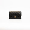 Elegante Chanel Timeless Double Flap Small in klassischem Schwarz mit goldener Hardware. Die ikonische Rautensteppung und die CC-Drehschließe unterstreichen das zeitlose Design dieser begehrten Silhouette.