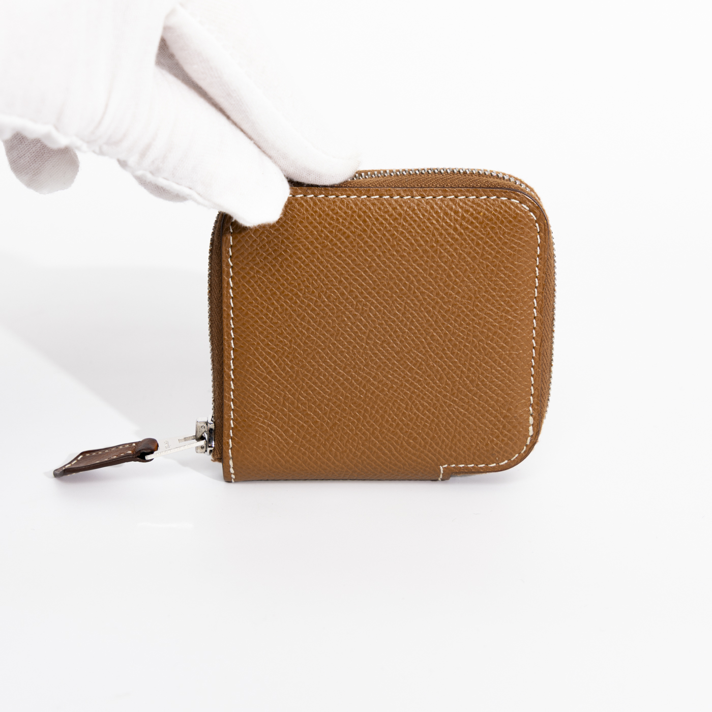 Hermès Azap Compact Mini-Geldbörse Epsom In Gold Mit Silberner Hardware