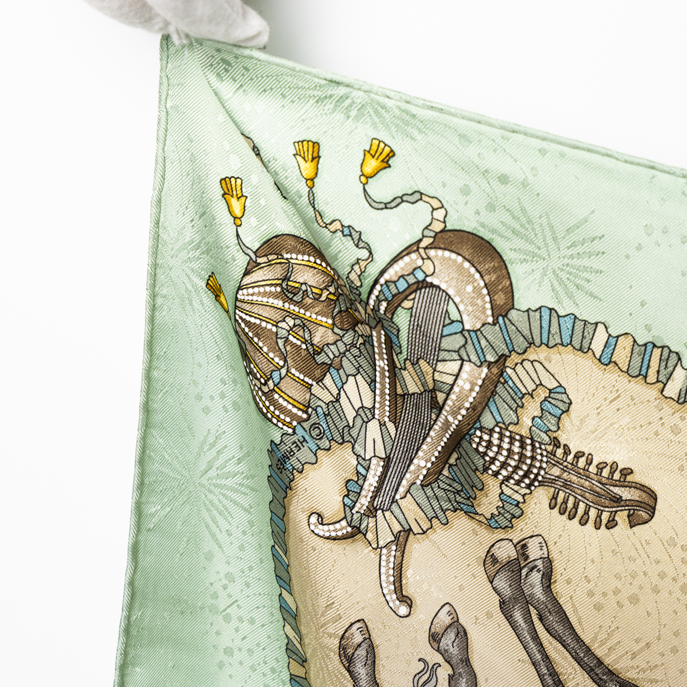 Gefertigt aus 100 % Seide in Frankreich, spiegelt dieses Carré die Liebe von Hermès zu Geschichte, Kunst und Handwerkskunst wider.