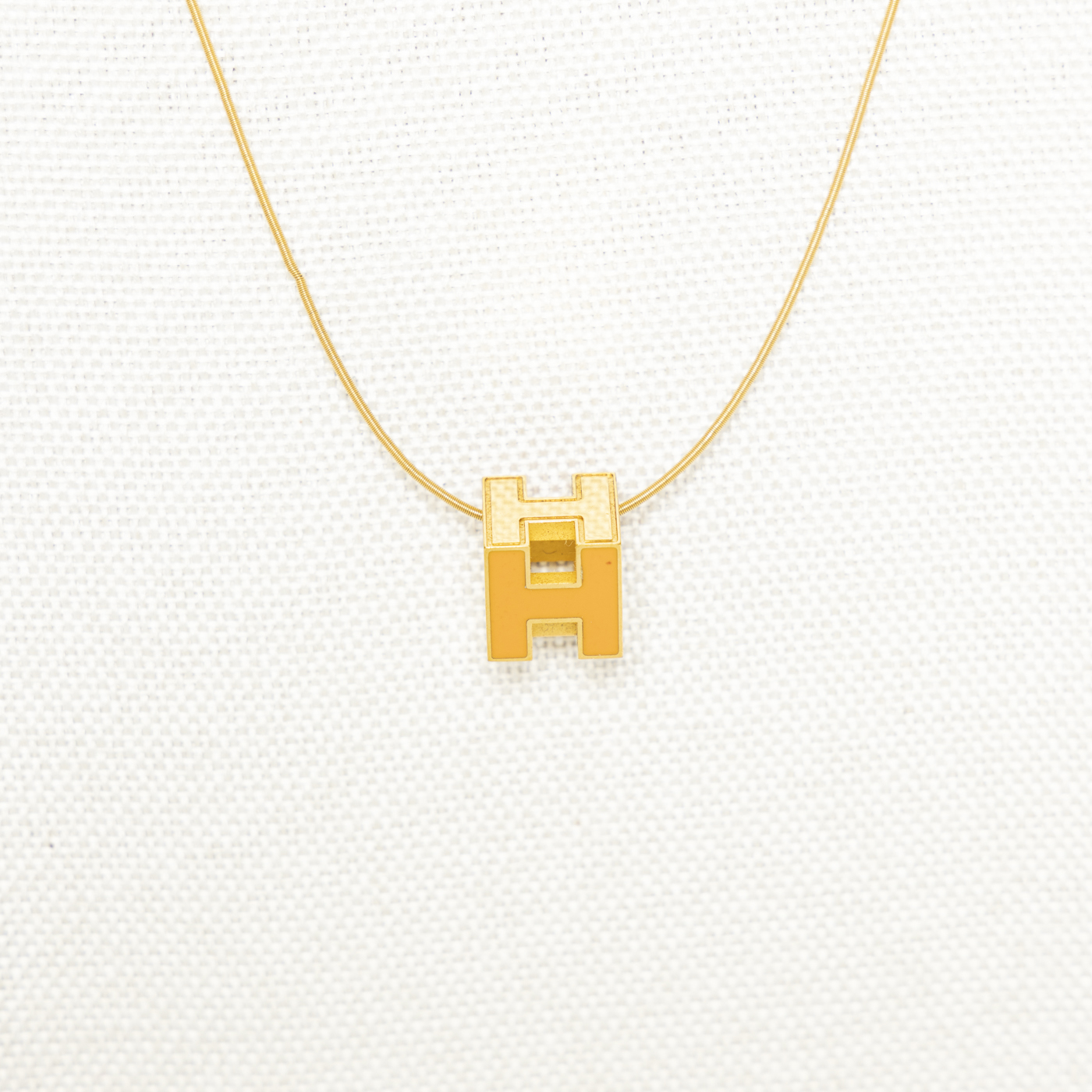 Die Hermès H Cube Kette vereint ikonisches Design mit moderner Eleganz. Der zarte Anhänger in charakteristischem Orange und vergoldeter Fassung setzt einen stilvollen Akzent und steht für die zeitlose Raffinesse des Hauses Hermès. Getragen an einer feinen Kette, fügt sich dieses Schmuckstück mühelos in jeden Look ein – von lässig bis elegant.