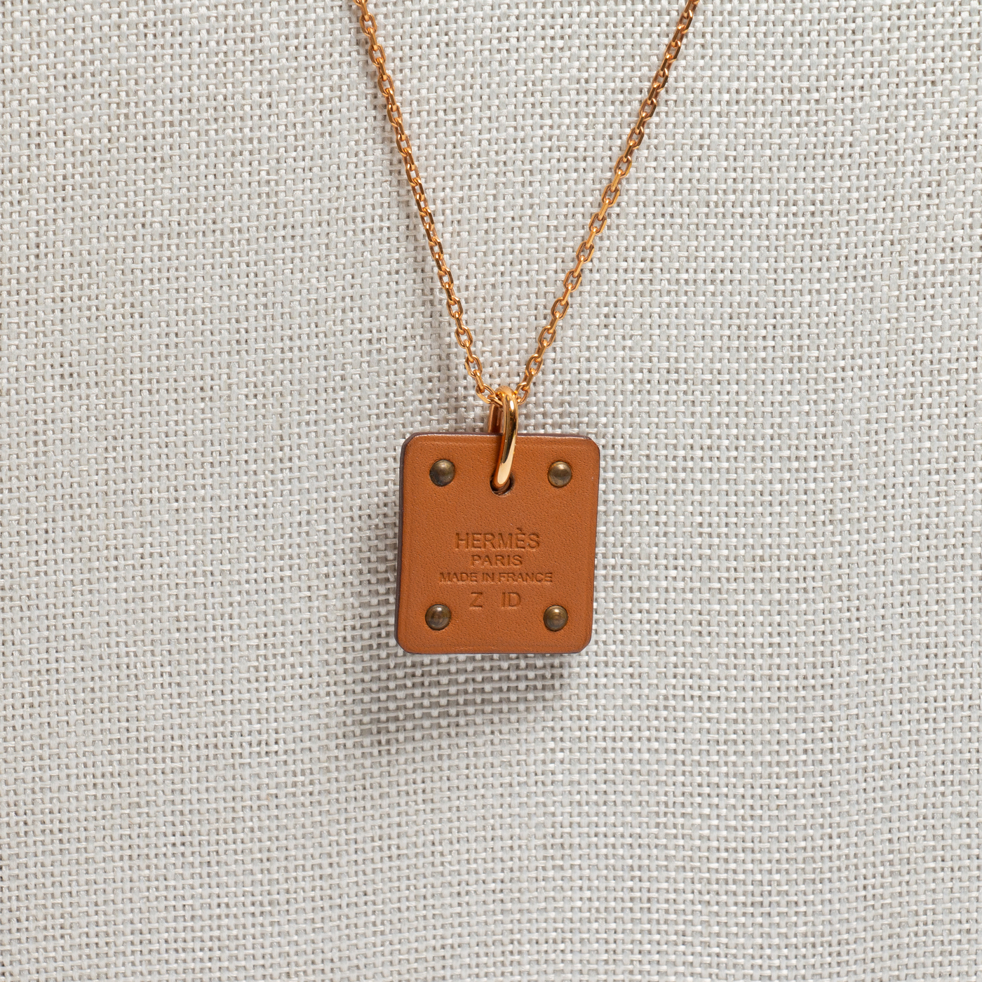 Die Hermès As de Coeur Halskette in Gold und Braun vereint luxuriöses Design mit zeitlosem Charme. Das goldene Anhänger-Design mit Herzmotiv ist in hochwertiges Leder eingefasst und strahlt Eleganz aus. Perfekt für besondere Anlässe oder als tägliches Statement-Piece, bietet diese Halskette vielseitige Tragemöglichkeiten. Hergestellt im Jahr 2021, befindet sich die Kette in sehr gutem Zustand. Geliefert wird sie in der Originalbox sowie mit dem Zertifikat von the luxury cabinet, welches die Echtheit des Artikels bestätigt.