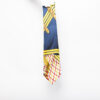 Diese elegante Hermès Krawatte aus reiner Seide präsentiert ein dynamisches, mehrfarbiges Design mit charakteristischen Sattlerei-Elementen der Maison. Die Kombination aus Marineblau, Gelb und warmen Akzenten wirkt markant und zugleich klassisch – ideal für Business-Looks oder formelle Anlässe.