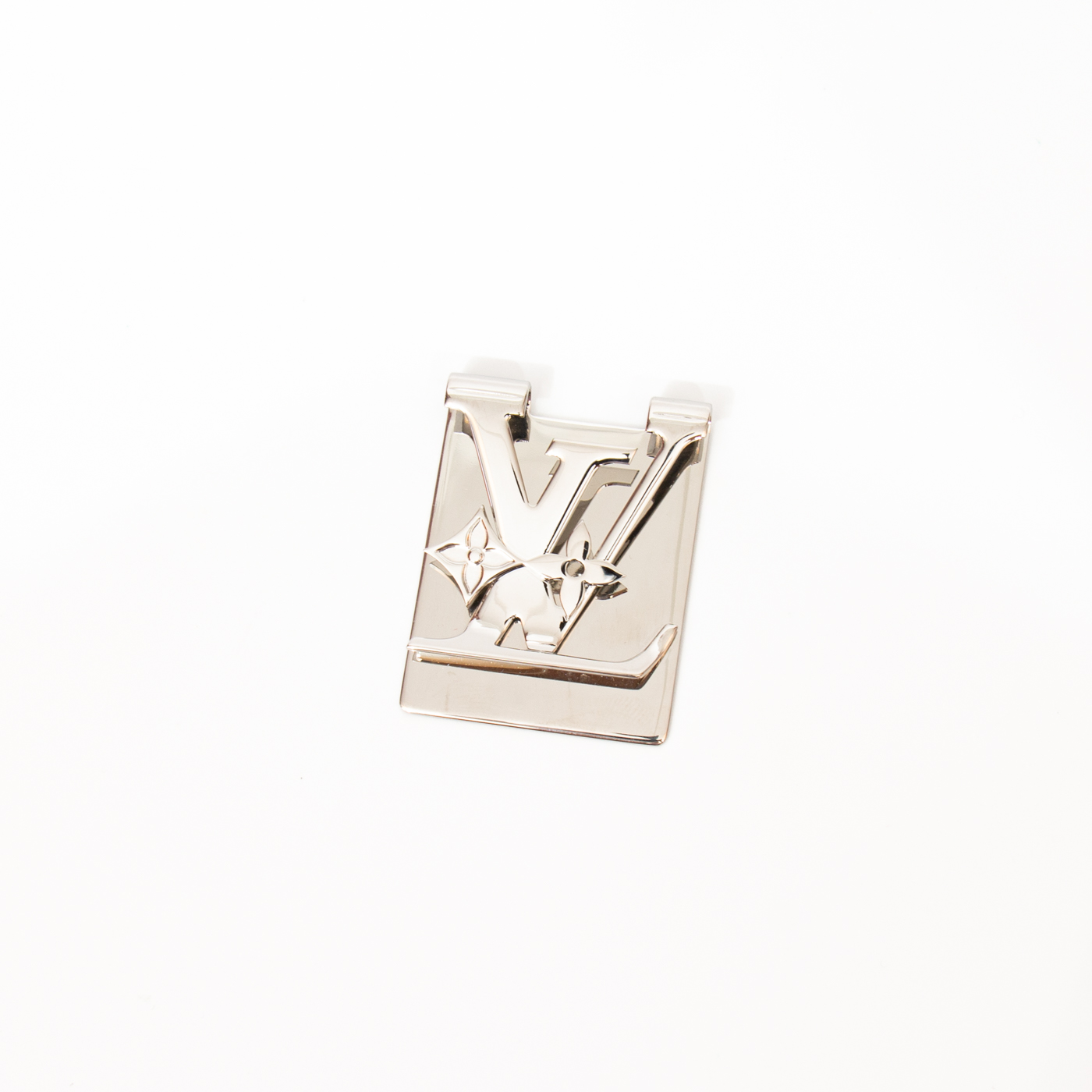 Louis Vuitton Geldclip M02571 in Silber mit ikonischem LV-Monogramm und filigranen Monogram-Blüten als stilvolle Akzente. Das moderne Design verbindet klare Linien mit der charakteristischen Ästhetik des Hauses.