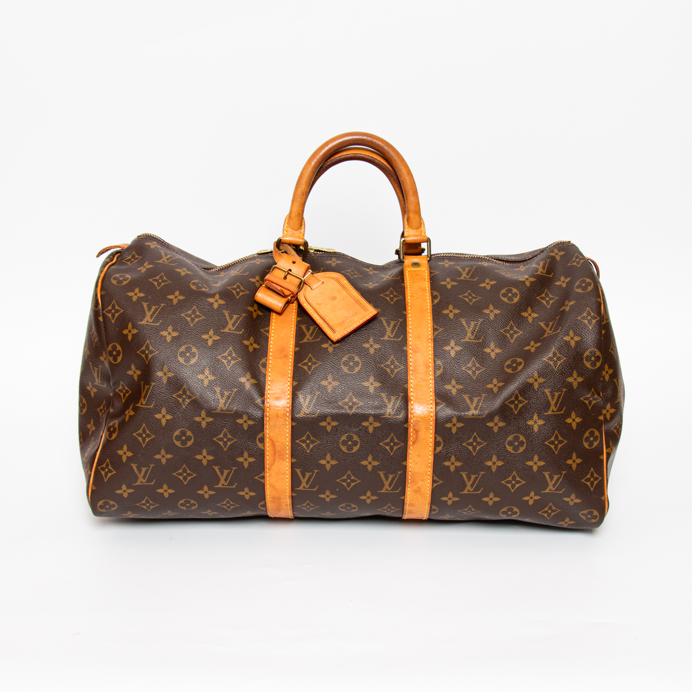 Die Louis Vuitton Keepall 50 aus Monogram Canvas präsentiert sich in der klassischen braunen Farbgebung und verkörpert die zeitlose Ästhetik der Maison. Das ikonische Design macht sie zu einer stilvollen Reisebegleiterin mit unverwechselbarem Charakter.