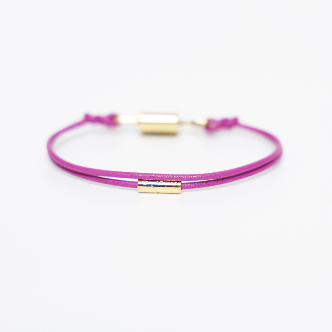 Dieses verspielte Armband von Louis Vuitton kombiniert ein fuchsiafarbenes Band mit einem goldfarbenen Padlock-Verschluss, der das ikonische LV-Logo trägt. Ein elegantes Accessoire mit modernem Twist – ideal zum Stapeln oder solo getragen. Das Armband befindet sich in sehr gutem Zustand.