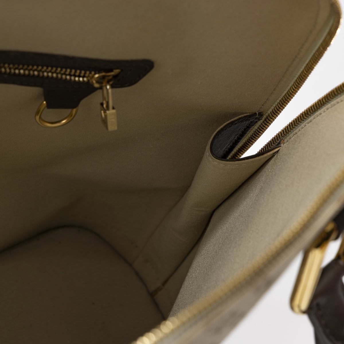 Die Louis Vuitton Vertical Mini Monogram Alma in Grau ist eine elegante Neuinterpretation des ikonischen Alma-Designs. Mit ihrem vertikalen Monogram-Muster und den harmonischen Farbtönen strahlt diese kompakte Tasche zeitlose Raffinesse aus. Die strukturierte Form und die hochwertigen Materialien machen sie zu einem langlebigen Begleiter, während die doppelten Griffe und der optionale Schulterriemen vielseitige Tragemöglichkeiten bieten. Ein luxuriöses Accessoire, das Funktionalität und Stil perfekt miteinander verbindet – ideal für Liebhaber klassischer Louis Vuitton-Designs mit einem modernen Twist.